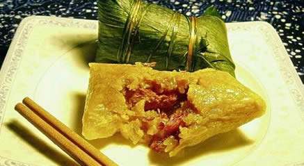 徽州裹粽:徽州春節(jié)也有包粽子的習俗,被稱為徽州裹粽?;罩莸聂兆哟蠖鄶凳钦眍^形,長而肥碩。箬葉洗凈,在糯米里加入適量的醬油、鹽、味精攪拌均勻;把糯米和腌好的肉用箬葉包成枕頭形狀,上鍋蒸兩個小時即可。