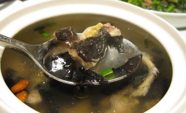 黃山雙石: 黃山雙石也是一道傳統(tǒng)的徽州菜肴。因其選用徽州當地特色的石耳和石雞為食材加工、烹飪,故被稱為“雙石”。做法:將石雞宰殺后清理干凈,放鹽抹勻,加入紅薯粉上漿,再放入開水中脫生,排去多余血水;將石耳洗凈去根,以溫水泡發(fā),用事先備好的高湯蒸十分鐘左右,再與石雞一起放入燉盅,加入生姜、蒜、少量白糖、高湯,慢火燉煮。
