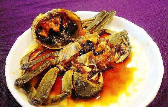 屯溪醉蟹:屯溪醉蟹是當地的特產,密封好的醉蟹,據說可以保存兩個月之久。做法:將活蟹清洗干凈,瀝干水后用竹簽掀開螃蟹臍蓋,取出污物;螃蟹放入壇子里,加入姜片、蒜瓣、白糖、醬油、封缸酒、高粱酒;用兩根竹片拼成十字形卡在壇子里將螃蟹壓住,蓋上蓋子,密封好;一個星期以后即可與蔥花、姜絲一同上桌食用。蟹肉鮮嫩,酒香濃郁,咸鮮中帶有一絲甘甜。